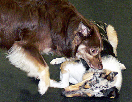 - Worstelen, waarbij de honden op de grond liggen en elkaar op verschillende plaatsen vastpinnen.